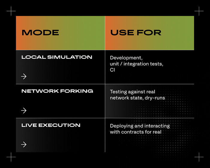 其中一个尤为突出的能力是 网络 forking。只需一行代码,你就可以 fork mainnet(或其他网络),并针对真实链上状态模拟交易。