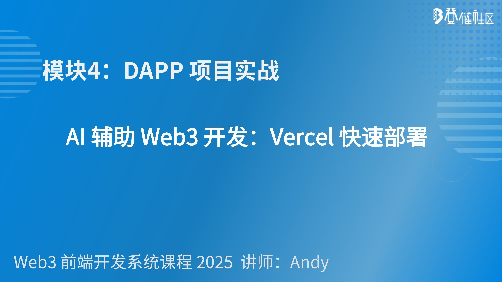 视频 AI 总结: 1. **核心内容:** 本视频主要讲解了如何使用 AI 工具辅助 Web3 项目的开发,并演示了如何使用 Vercel 平台快速部署项目。同时,也对课程内容进行了回顾,并预告了下一节课的内容,即求职面试相关的内容。 2. **关键信息:** * **课程相关:** 提醒新同学补交作业,并在文档中登记信息以便退学费。 * **AI 辅助开发:** 使用 AI 根据文档和 UI 设计图完成项目开发,强调理解逻辑的重要性,并使用 STAR 法则进行任务拆解。 * **Vercel 部署:** 介绍了 Vercel 平台的优势,即快速验证和部署项目,并演示了如何通过 Vercel 官网注册账号、导入 GitHub 仓库、配置环境变量和部署项目。 * **部署流程:** 详细讲解了 Vercel 部署项目的步骤,包括注册账号、导入项目、配置环境变量、选择构建命令和部署项目。 * **问题解决:** 强调在 AI 辅助开发过程中,需要人工干预解决报错,并对 AI 的输出进行复盘和纠错。 * **课程回顾与展望:** 回顾了课程内容,包括前端基础、区块链基础、Web3 前端工具和项目实战,并预告了下一节课的内容,即求职面试相关的内容。 * **就业建议:** 建议关注登链社区获取 Web3 相关资讯,并关注 Tiny 老师的系统课进行深入学习。