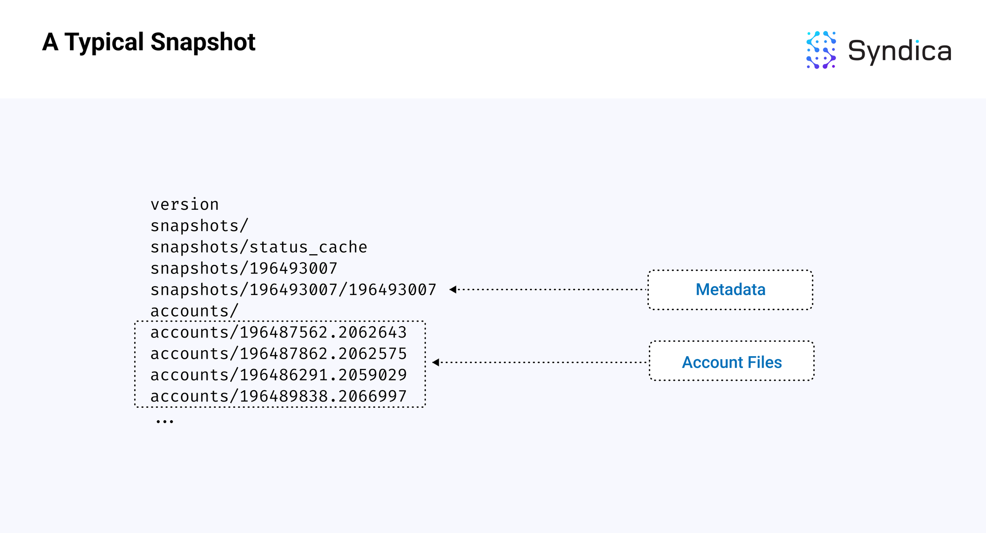 以下是插槽 196493007 的标准 Solana 快照的示意图,两个组件已被高亮显示。