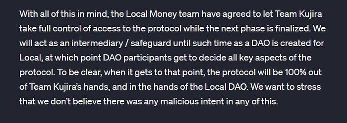 ⚠ 最终,我们应该组织起来并成立一个 DAO(去中心化自治组织),以便Kujira 团队可以善意地履行他们的承诺,并将 Local 资产发布给这个社区批准的 DAO ⚠确保Local不仅继续运行,更重要的是,恢复开发它,并确保它充分发挥其最大和无限的潜力。🚀