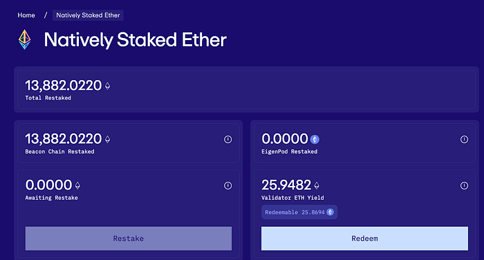 一旦你的验证者被存入,你可以在 EigenLayer 上原生再质押你的 ETH。