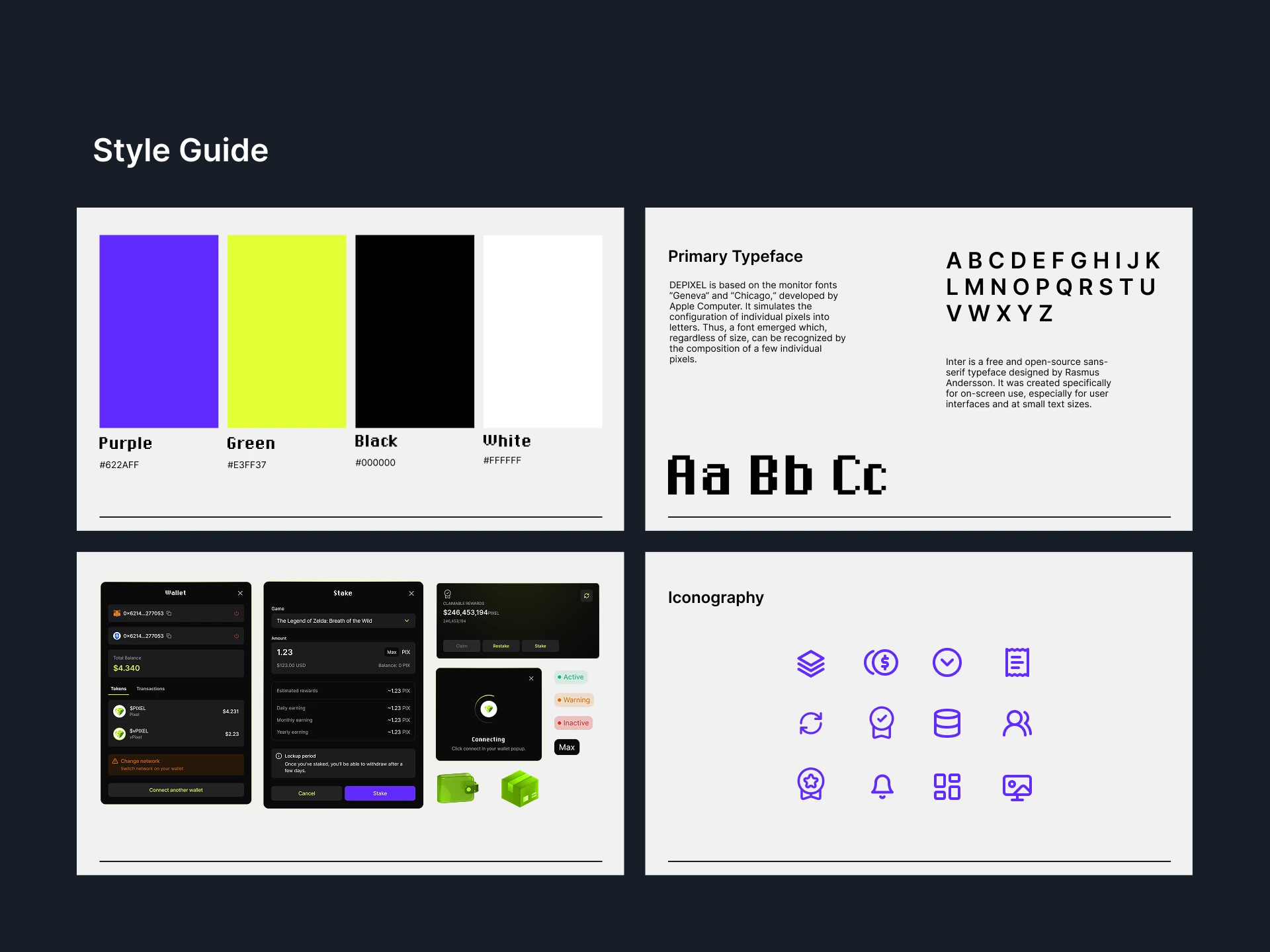 我们采用了迭代设计流程(Empathize, Define, Ideate, Prototype, Test, Repeat)来打造一个直观的用户体验,无需玩家成为区块链专家。由此产生的设计提供了用于 staking、领取奖励和提款的简洁界面,同时符合独特的 Pixels 品牌标识。