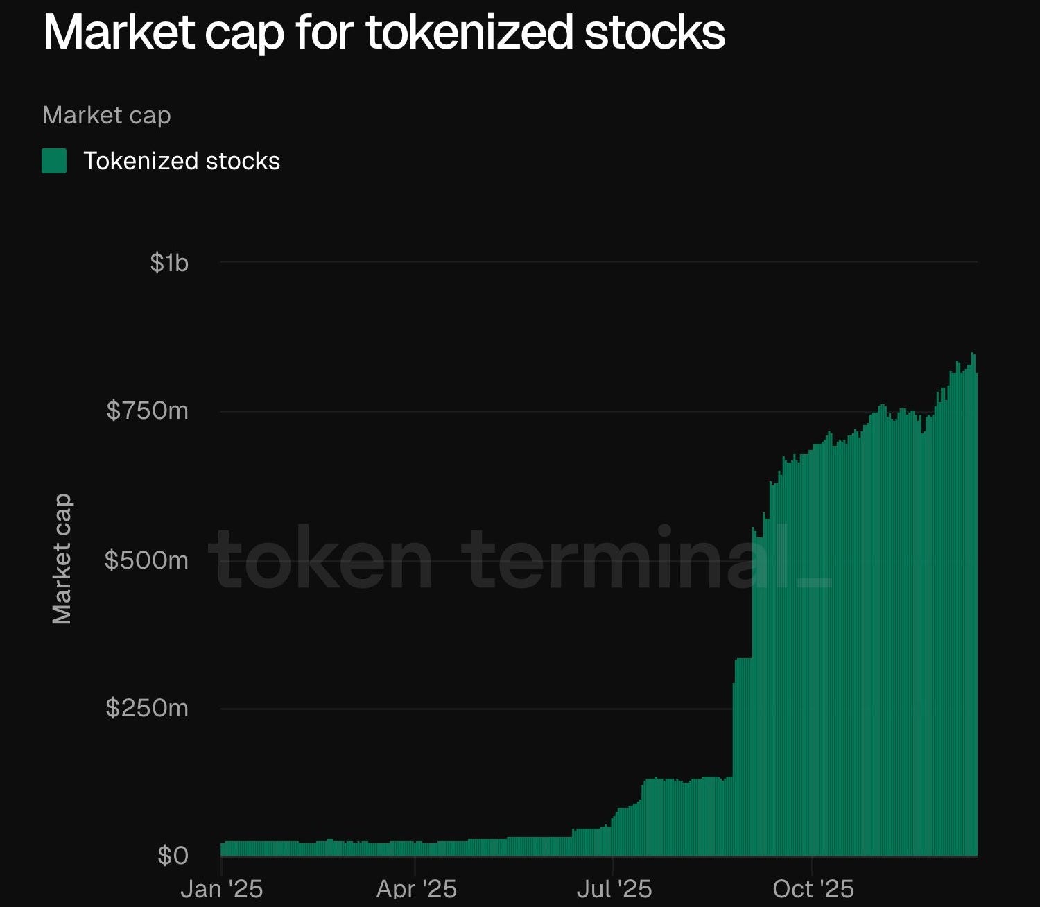 虽然早期的 RWA 工作重点是美国国债,但 2025 年,代币化股票成为主要的零售和机构桥梁。代币化股票允许非美国投资者以最小的摩擦获得美国股票收益。代币化股票的市值从年初开始经历了令人难以置信的 30 倍增长。