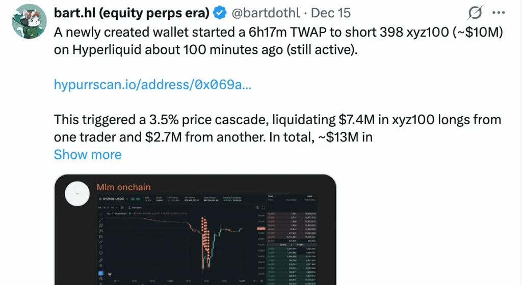自从在主网上部署以来,构建者部署的市场在大约三个月内产生了超过 130 亿美元的交易量,这表明 HIP-3 可以显著提高市场扩展的可扩展性和灵活性。然而,这种转变不仅仅是权力下放;它还重新分配了责任。以前由中心化平台运营承担或减轻的风险现在直接由构建者承担。