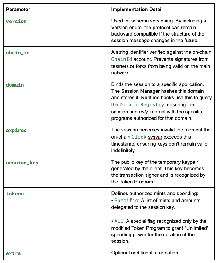 这种机制确保了除非用户以密码学方式签署了程序加载的确切配置参数(即,已签名的消息与提供的会话配置匹配),否则无法创建会话帐户。