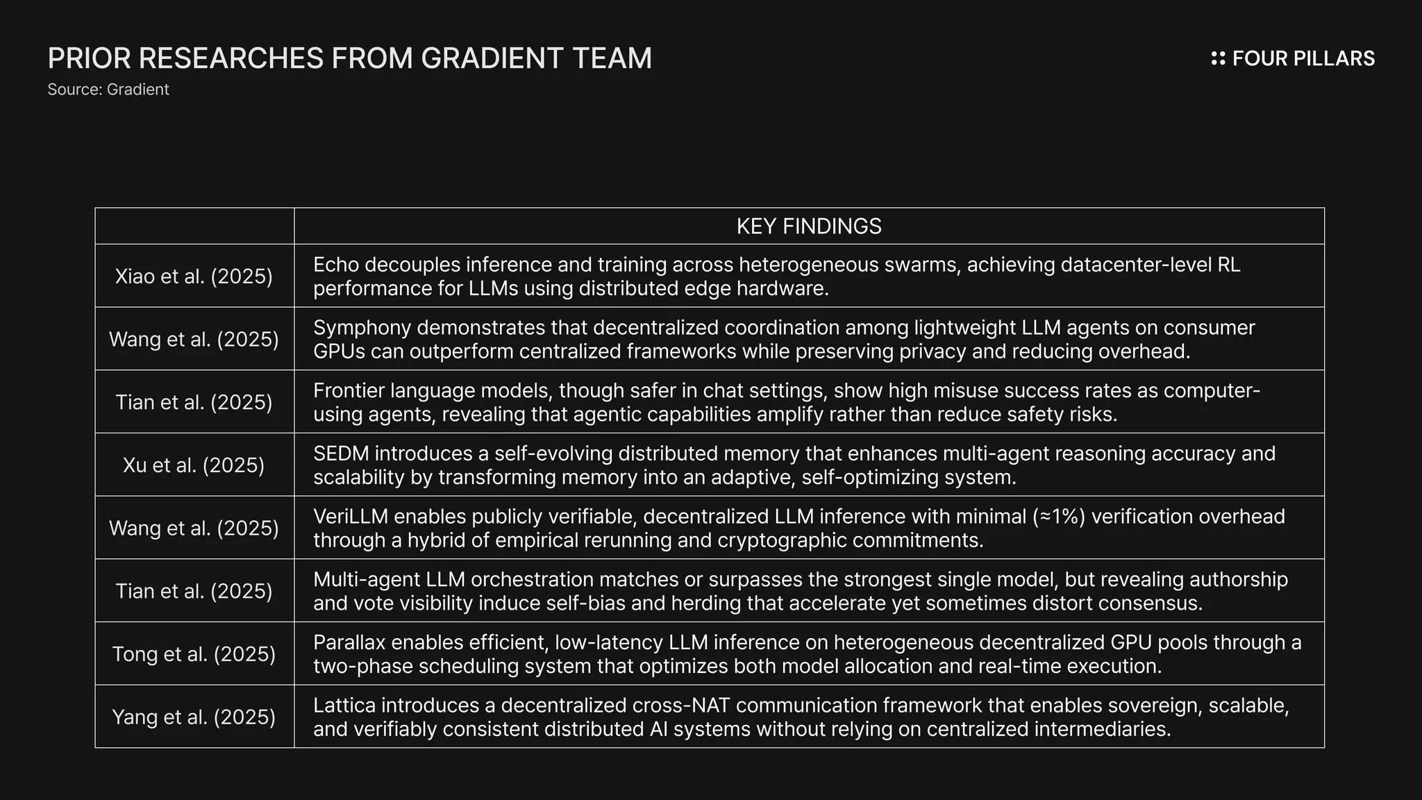 根据他们正在进行的研究,Gradient 团队迄今为止已发布了四个核心基础设施层和服务: