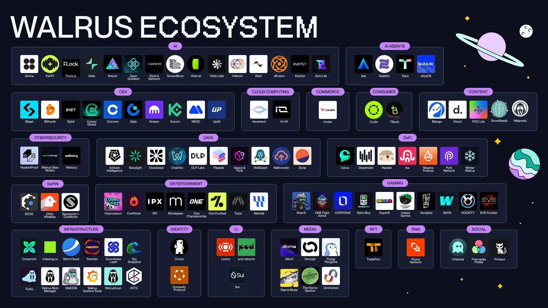 Walrus 的另一个主要优势在于其开发者友好的架构以及通过战略合作伙伴关系建立的不断扩展的生态系统。 Walrus 提供多种编程语言(如 TypeScript、Python、Golang 和 Rust)的 SDK,使开发人员能够轻松地将该协议与熟悉的工具集成。它可以通过 macOS 和 Ubuntu 的二进制客户端以及通过命令行界面通过 JSON 和 HTTP API 运行,从而允许开发人员以灵活的方式构建利用 Walrus 去中心化存储层的应用程序。