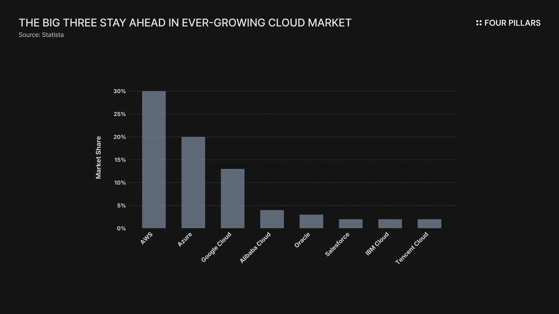 2025 年,数据仍然是中心化的。世界上大多数海量数据量存在于通常被称为“云三巨头”的:Amazon AWS、Microsoft Azure 和 Google Cloud 中。它们共同占据全球云基础设施市场 60% 以上的份额,并且大多数网络服务和应用程序都在它们的平台上运行。过去,电信公司控制着数据的流动。如今,云提供商控制着存储和访问本身。这种结构包含一个关键风险,称为单点故障。