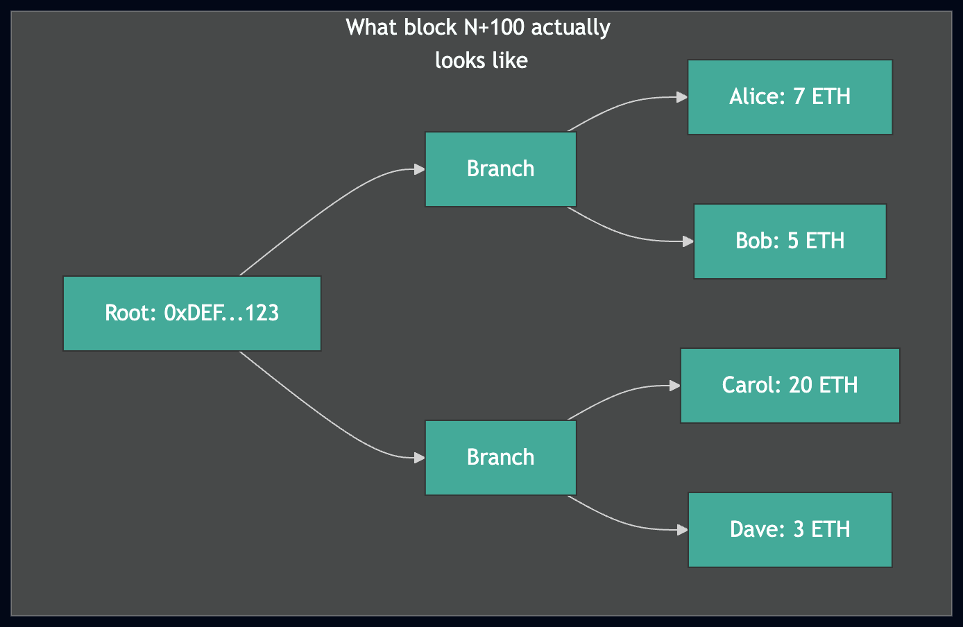 • 我们在区块 N+100 下载了 1 个新账户:Dave (3 ETH)。