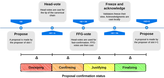 SSF 的設計: 4 个步驟,每个步驟为 $\Delta$ 延遲,所以理論上为 $4\Delta$ 的延遲。source: https://ethresear.ch/uploads/default/original/2X/b/b2e3bad804fd7b520b49902e89ab31bcfe56a06a.png